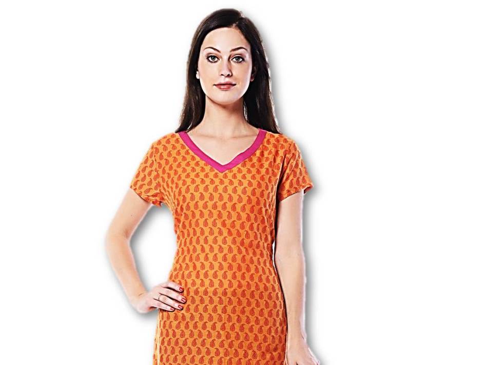 Meira Half Sleeve V Neck Orange Cotton Kurti