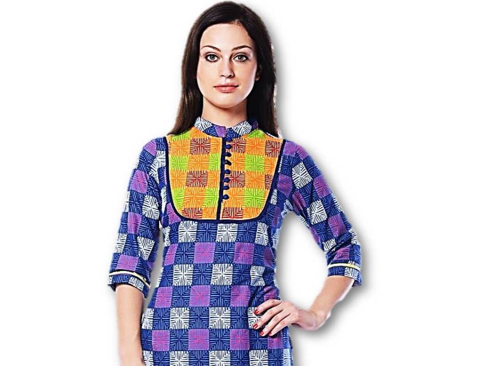 Meira 3/4 Sleeve Chinese Collar Multi Cotton Kurti